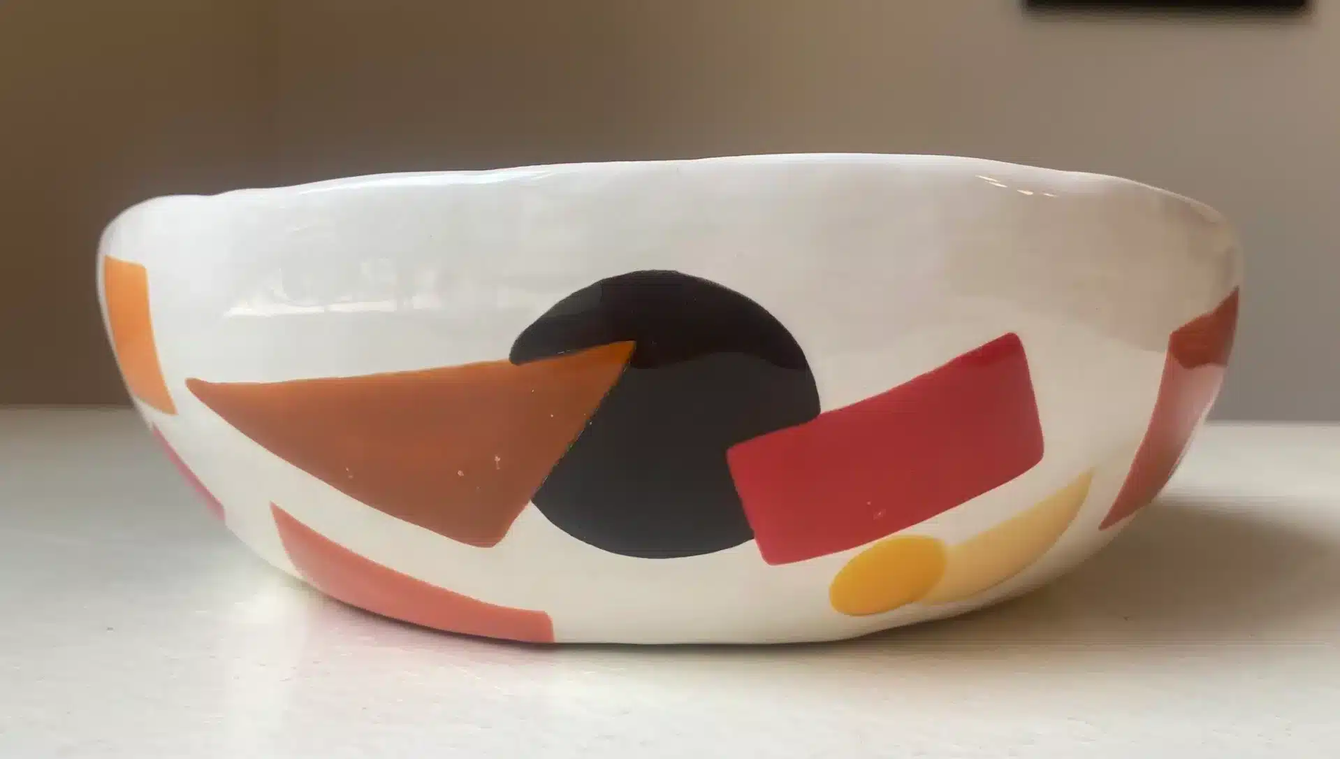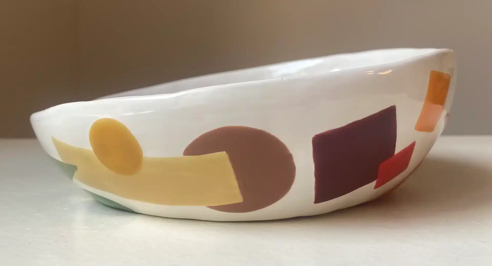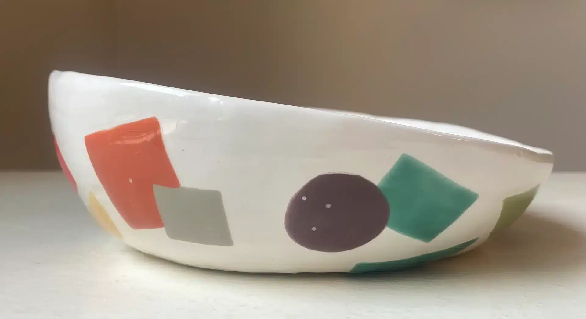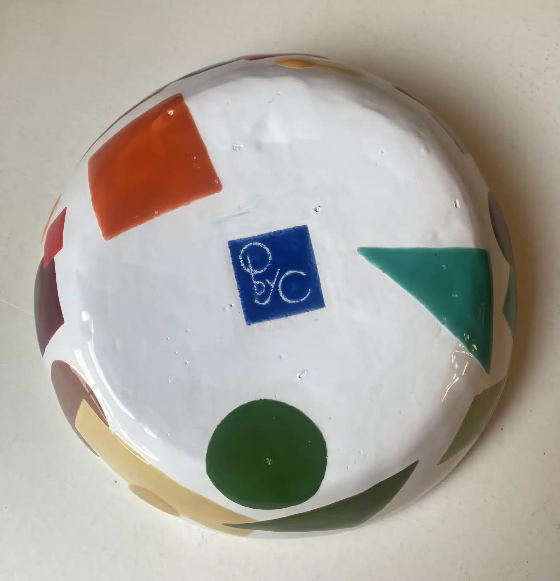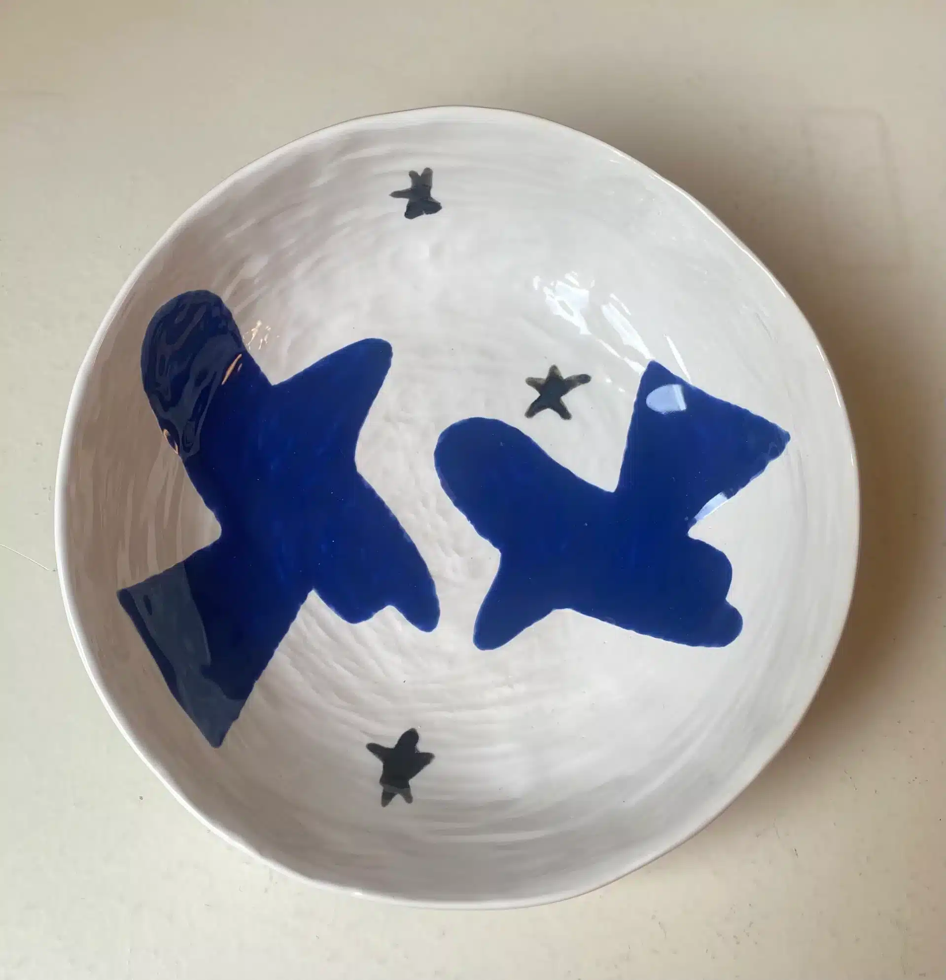 Saladier coloré blanc & bleu cubiste « colombes »